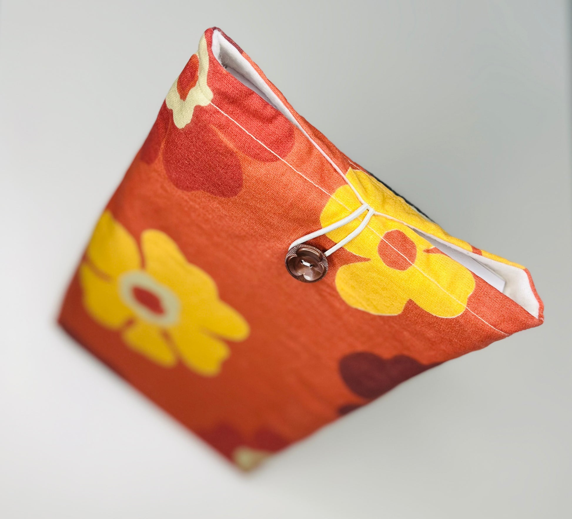 Handsydd tydpåse för bok.
