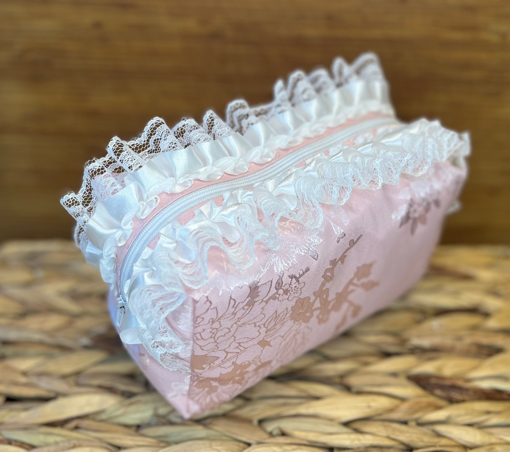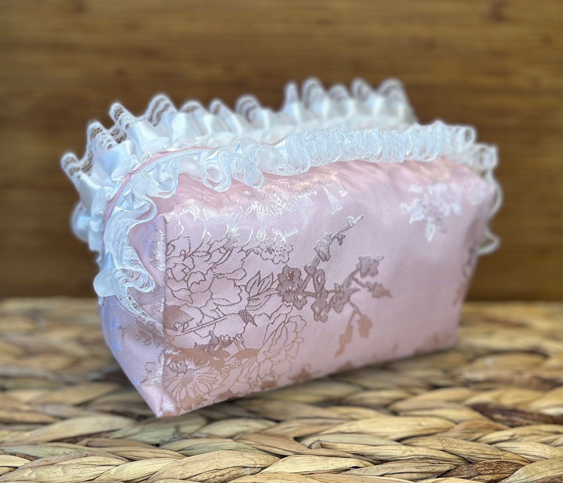 Handsydd mindre väska för smink, kristaller eller annat smått.
