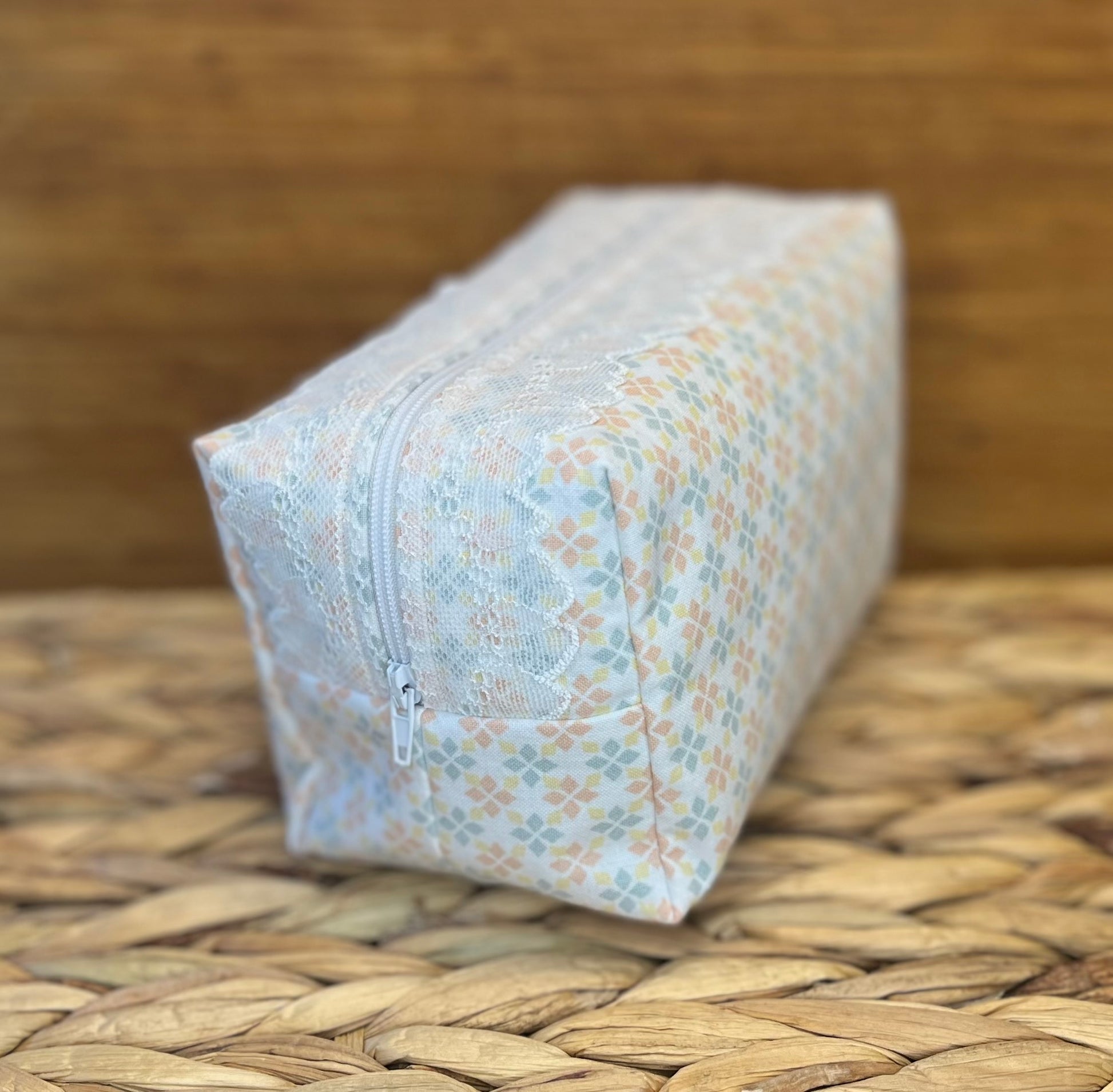 Handsydd mindre väska för smink, kristaller eller annat smått.